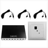 Das IR-Link-Set (IR Splitter) ist ein kabelgebundener Code-Umlenker für IR Kommandos. Das Set besteht aus 1xIR Empfänger im Edizio Design (weiss) 1 x IR-Auskoppelbox und 3xIR-Link Sender, 1 x Netzadapter 230 Volt. Zur Verkabelung zwischen IR-Empfänger und Auskoppelbox wird ein drei adriges Kabel benötigt, max. Kabellänge: 100 Meter. Die IR Link können bis 25 Meter verlängert werden. Maximal Anschliessbar: 8 x IR Link oder 8 x Doppel-IR Link.